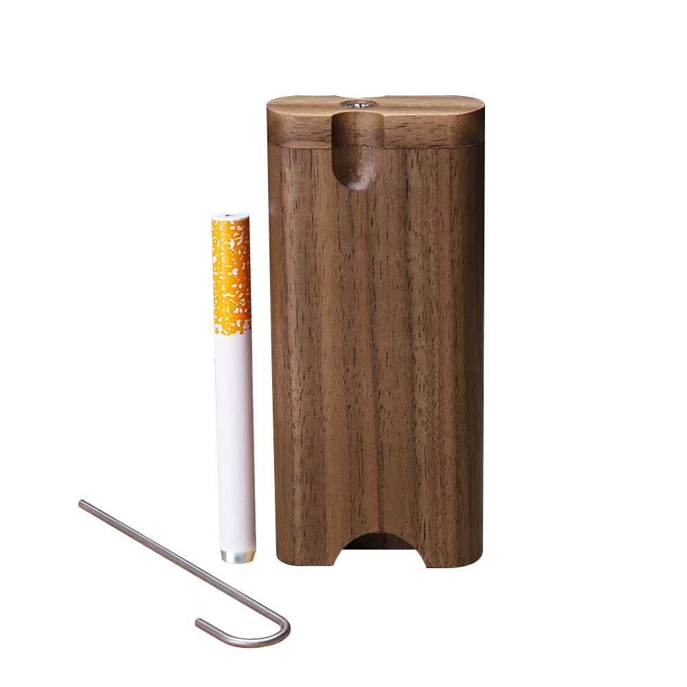 Wooden Dugout Stash Box Self Cleaning Metal One Hitter Tobacco Smoking Kit
